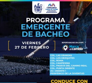 LocalAtenderá Municipio ocho zonas con bacheo este viernes 27 de febrero.La redacción3 horas ago27 febrero, 2026153Las Granjas, Los Mezquites, Roma, Campesina, Paseos del Camino Real y Punta Oriente
