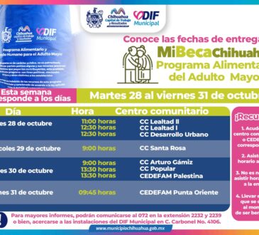 LocalEstos son los lugares para acudir por tu apoyo PAAM del DIF Municipal del 28 al 31 de octubre.La redacción6 horas ago26 octubre, 2025138Las y los adultos mayores deberán presentarse con el carnet que se les otorgó al ser seleccionados del programa