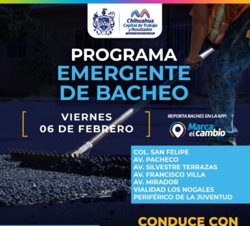 LocalAtenderá Municipio con bacheo siete zonas este viernes 6 de febrero.La redacción3 horas ago6 febrero, 2026112En calles de la colonia San Felipe, así como en las avenidas Pacheco, Silvestre Terrazas, Francisco Villa
