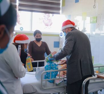 Además, por ser temporada navideña, entregaron bolsitas de dulces a las y los pequeños que acompañaban a sus padres o a algún familiar a las afueras del nosocomio.
