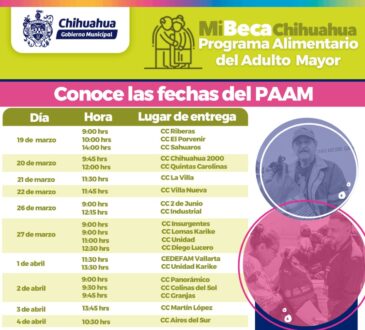 LocalAcude por tu paquete alimentario PAAM este martes 2 de abrilRedacción Jr.2 años ago2 abril, 2024520Panorámico, a las 9:00 horas · Colinas del Sol, a las 9:30 horas · Granjas, a las 9:45 horas