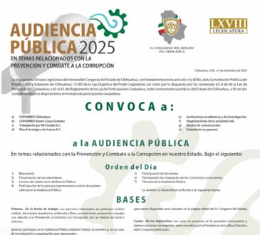 LocalEste miércoles ocho de enero darán comienzo las Audiencias Públicas 2025 del Congreso del Estado.La redacción11 meses ago31 diciembre, 2024519-La prevención y combate a la corrupción en el Estado, será el tema de la Audiencia 2025.