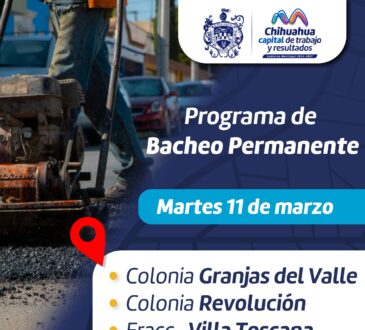 En la zona permanece una cuadrilla de la dependencia atendiendo calles como la Nicolás Rodríguez, Manuel N. López, Lorenzo García y la Gabriel Gabira; estos trabajos se realizan previo a la Cruzada por Juárez