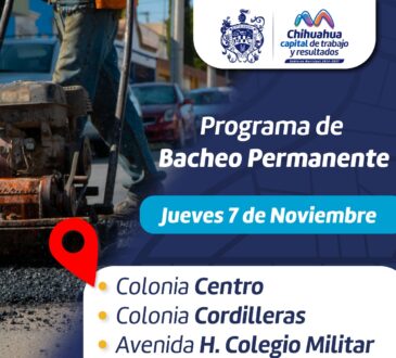 A fin de atender los reportes de baches denunciados por los ciudadanos, el Gobierno Municipal anuncia que hoy 4 de octubre intervendrán en calles de las colonias Camino Real, Girasoles, Unidad y en fraccionamiento Veredas del Sur.