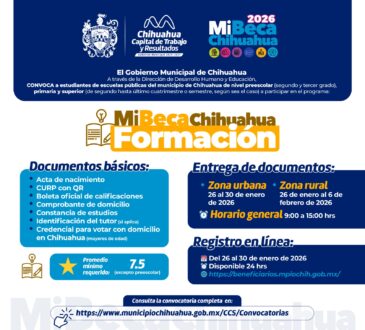 LocalAnuncia Municipio convocatoria de “Mi Beca Chihuahua 2026” en su modalidad de formación.La redacción6 horas ago18 enero, 2026171El registro podrá realizarse del 26 al 30 de enero.