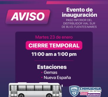 RegionalSuspenden temporalmente la ruta UACH del BOWI por periodo vacacionalRedacción Jr.1 año ago27 junio, 2024633La Secretaría General de Gobierno, a través de la Operadora de Transporte (OTV), dio a conocer que a partir del...