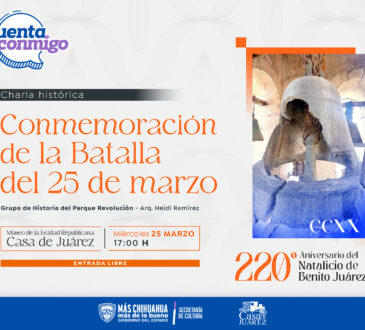 FarandulaInvitan a la Charla Histórica sobre la Batalla del 25 de marzo en el Museo Casa de Juárez.La redacción3 horas ago24 marzo, 2026116El hecho aconteció durante la Segunda Intervención Francesa, cuando Chihuahua fue sede de la capital de la República.