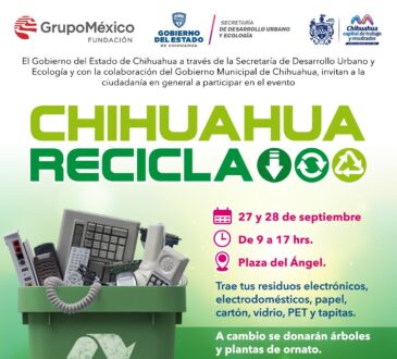 LocalReitera Municipio invitación a “Chihuahua Recicla 2024” este 27 y 28 de septiembre.La redacción1 año ago27 septiembre, 2024636Podrás intercambiar tu basura electrónica por árboles y flores de ornato en la Plaza del Ángel
