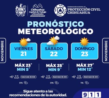 El martes 21 continuará con cielo despejado y ambiente soleado, con temperaturas de 30°C como máxima y 15°C mínima, además de viento ligero a moderado y sin probabilidad de lluvia.