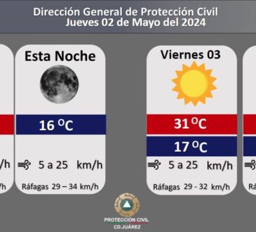 Durante el sábado se prevé el ingreso de un nuevo frente frío que puede incrementar la velocidad del viento a 65 km/h en Rosales, Ascensión, Nuevo Casas Grandes