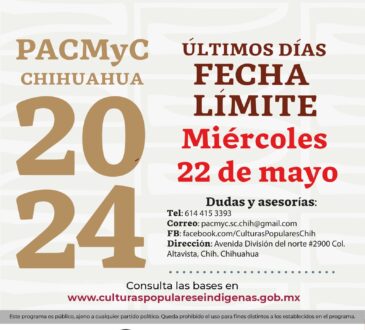 la entrega de propuestas estará disponible hasta las 23:59 horas, y se deberá de enviar un correo electrónico con la documentación a la dirección: pacmyc.sc.chih@gmail.com.