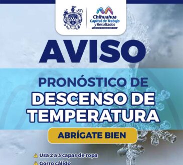 LocalEmite Gobierno Municipal alerta preventiva por descenso de temperaturas en Chihuahua Capital.La redacción2 semanas ago28 diciembre, 2025470De acuerdo con los pronósticos meteorológicos, se esperan temperaturas mínimas que oscilarán entre los 2 °C y 4 °C