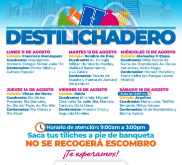 Estará Destilichadero en seis colonias del 11 al 16 de agosto.