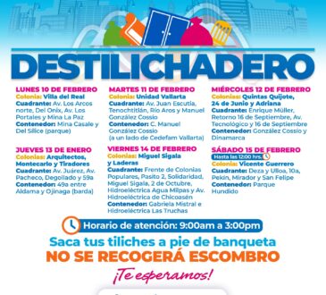 LocalEstará programa Destilichadero en 11 colonias del 10 al 15 de febrero.La redacción8 meses ago8 febrero, 2025680El Destilichadero consiste en retirar basura de grandes dimensiones que el camión recolector no puede trasladar