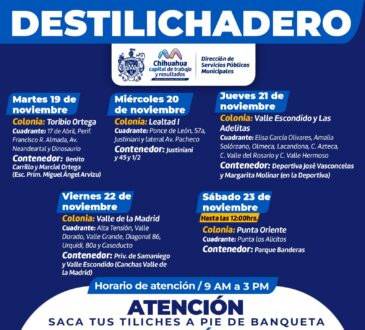 LocalVisitará Destilichadero seis colonias del 19 al 23 de noviembre.La redacción11 meses ago16 noviembre, 2024653El Destilichadero consiste en retirar basura de grandes dimensiones que el camión recolector no puede trasladar,