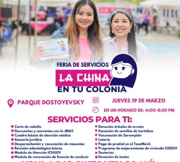 LocalLleva “La China” Frías Feria de Servicios al Parque Dostoyevsky.La redacción3 horas ago18 marzo, 2026136Este jueves 19 de marzo en el Parque Dostoyevsky, en un horario de 4:00 a 8:00 de la tarde.
