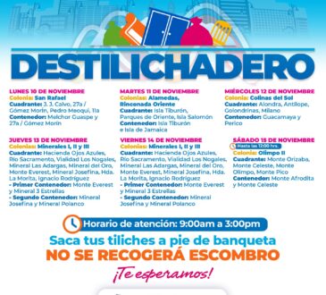 Aunado a ello, se realizan recorridos con perifoneo en los vehículos por los cuadrantes de las colonias que se visiten en la semana para retirar los tiliches, por lo que se pide que dejen estos desechos al pie de banqueta.