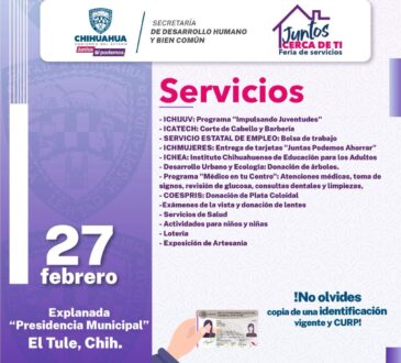 LocalFeria de servicios “Juntos Cerca de Ti” llega mañana a colonia Chihuahua 2000La redacción2 años ago25 enero, 2024520En un horario de 16:00 a 18:00 horas, con atención de personal de la Secretaría de Salud, Fiscalía General del...