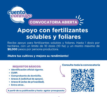 LocalAbren convocatoria para acceder a apoyo para fertilizantes solubles y foliares del programa Cuenta Conmigo en el Campo.La redacción4 horas ago12 abril, 2026137El esquema contempla un límite de una dosis por hectárea y hasta un máximo de 10 dosis por persona productora