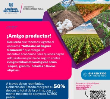 LocalOtorgan incentivo económico para agricultores que adquieran póliza de seguro contra sequíaMichelle Mtz1 año ago29 agosto, 2024538Con ello se fortalece el campo chihuahuense y se trabaja en la concientización sobre la importancia de adquirir esquemas de aseguramiento que permiten reducir la incertidumbre en los procesos productivos.
