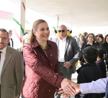 La titular del Ejecutivo recorrió las diferentes aulas de preescolar, primaria y secundaria para repartir la chamarras y transmitirle a las y los menores de edad.