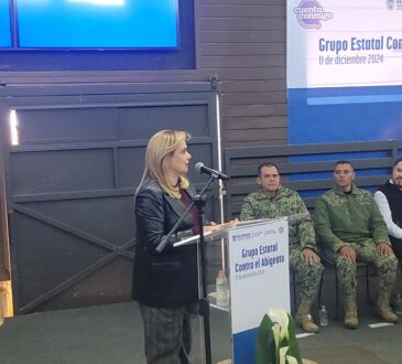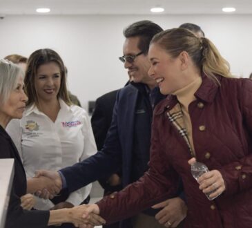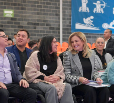 La titular del Ejecutivo recorrió las diferentes aulas de preescolar, primaria y secundaria para repartir la chamarras y transmitirle a las y los menores de edad.