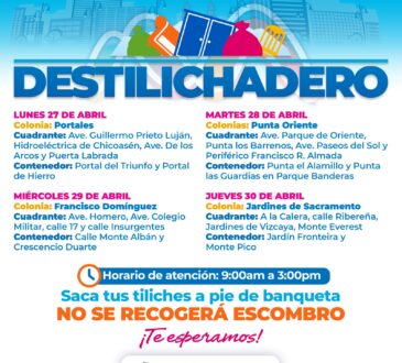 Aunado a ello, se realizan recorridos con perifoneo en los vehículos por los cuadrantes de las colonias que se visiten en la semana para retirar los tiliches, por lo que se pide que dejen estos desechos al pie de banqueta.