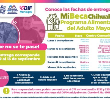 LocalAcude por tu entrega PAAM del 15 al 19 de julio en tu centro comunitario.La redacción1 año ago731En atención al compromiso que el Gobierno Municipal tiene con las y los adultos mayores de Chihuahua Capital