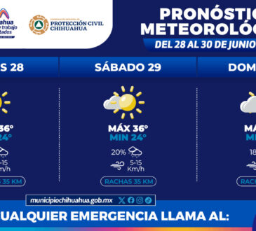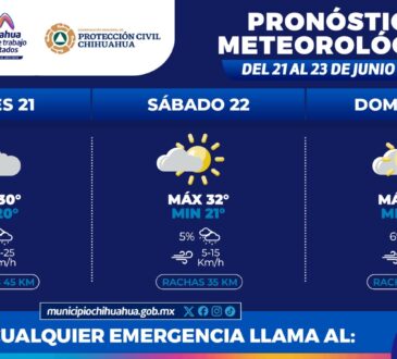 RegionalCielos nublados y ligera probabilidad de lluvias este fin de semana: Protección Civil MunicipalRedacción Jr.1 año ago21 junio, 20241kLa Coordinación Municipal de Protección Civil, informa que este fin de semana, del 21 al 23 de junio, se prevén...