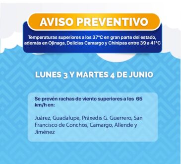 RegionalPrevé CEPC temperaturas calurosas y vientos moderados para este inicio de semanaRedacción Jr.1 año ago3 junio, 2024664La Coordinación Estatal de Protección Civil (CEPC) dio a conocer que para este lunes 3 y martes 4 de junio,...