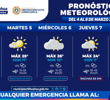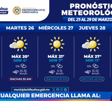 LocalPronostican máximas de 26°C para esta semana, con cielos nublados y vientos fuertesRedacción Jr.2 años ago693La Coordinación de Protección Civil Municipal informa que para esta semana se pronostican temperaturas máximas de 26°C, con mínimas de...