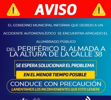 Local¡Aviso! Por accidente vial permanecerá apagado alumbrado público del R. Almada y calle 38.La redacción8 horas ago7 febrero, 2026143Actualmente se realizan las revisiones correspondientes para determinar los daños