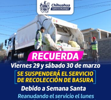 Recuerda, se suspenderá recolección de basura este viernes 29 y sábado 30 de marzo