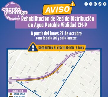 Debido a estos trabajos, el tránsito de sentido poniente-oriente podrá circular a baja velocidad sobre la Ch-P a contraflujo en el sentido oriente-poniente entre las calles antes mencionadas.