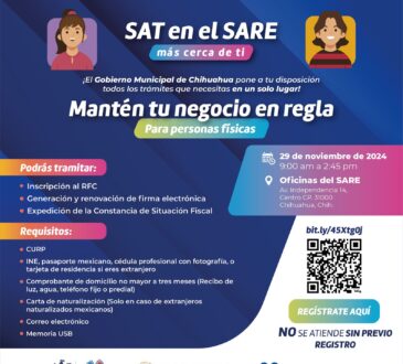 LocalAprovecha el programa “SAT en el SARE” y tramita las licencias o permisos necesarios para tu negocio.La redacción12 meses ago21 noviembre, 2024535El Gobierno Municipal te invita este viernes 29 de noviembre de 9:00 a 14:45 horas en las oficinas del SARE